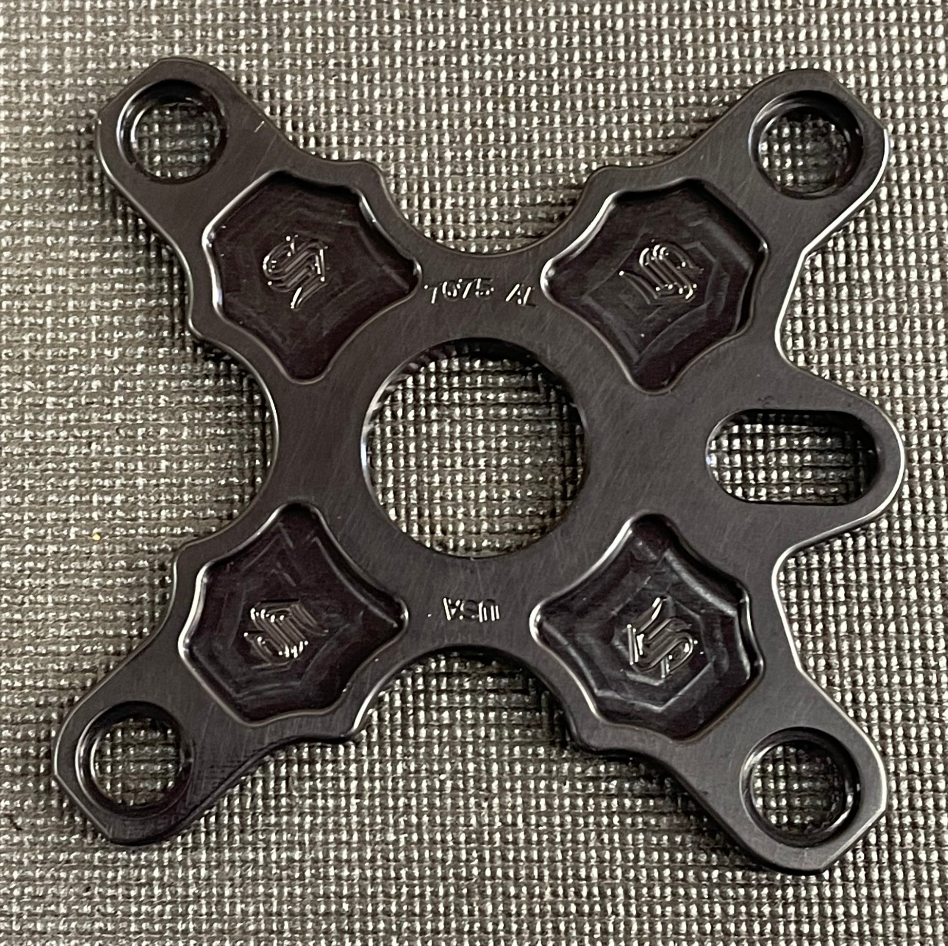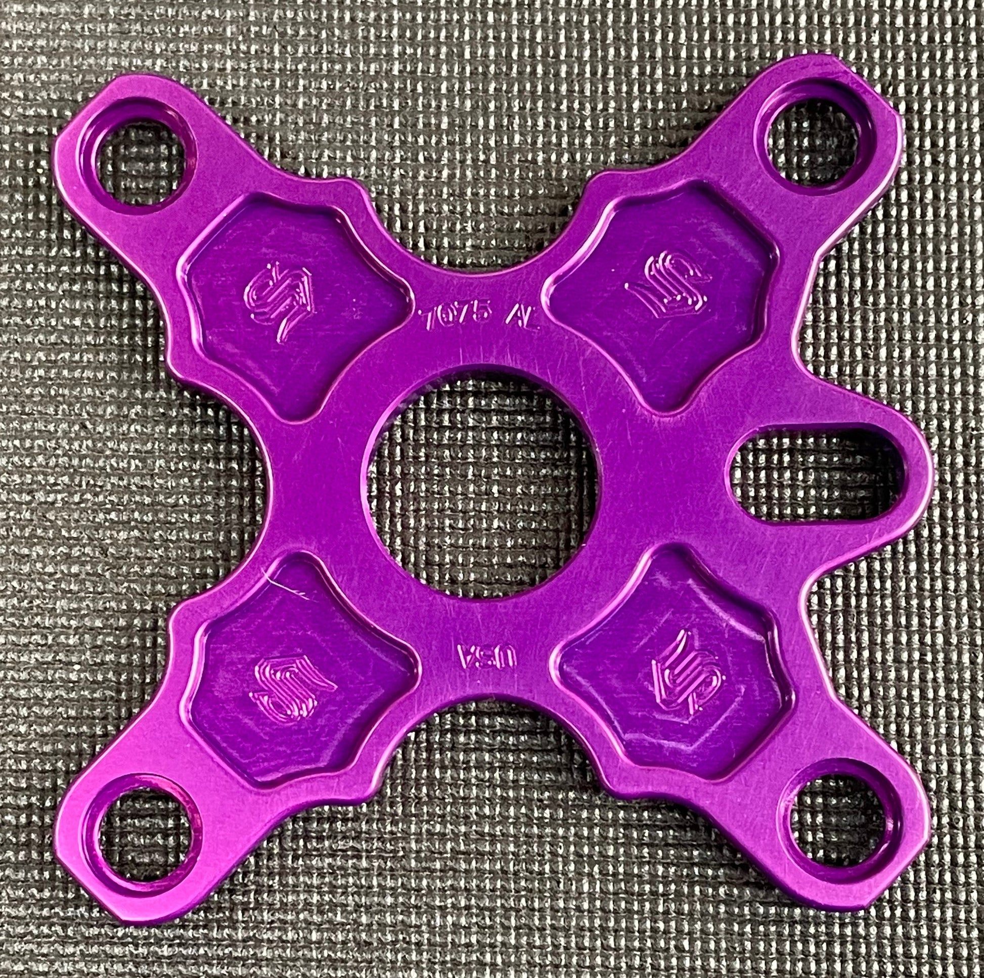 Snap's new S75 Bolt-on Spiders designed to fit Bassett and Technique cranks. Fits standard 104mm bcd chainrings and makes changing rings a Snap!! S75 is made to be reversible, to help get your chain in perfect alignment. Made from 7075 alum and comes standard with 25mm spindle hole and longer bolt slot. Available in assorted anodized colors.